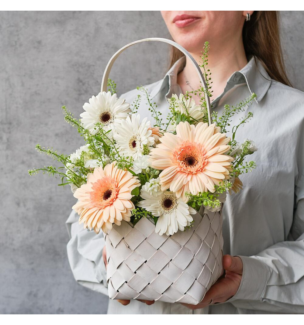 Нежная корзинка с ромашками - герберами